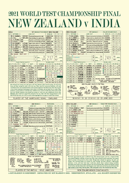 KIT HARRIS SCORESHEETS are the original hand-crafted, ball-by-ball, line-by-line scoresheet posters. There are cheap imitations, which show the scores well enough, but Kit Harris scoresheets are different. They are works of art. They are owned by Eoin Morgan, Jonny Bairstow, Tom Latham, Ben Stokes, Jofra Archer, Chris Woakes, Sam Curran, Moeen Ali, Adil Rashid, Jason Roy, Joe Root, Liam Plunkett, James Vince, Liam Dawson, Mark Wood, Tom Curran, Jack Russell, Jonathan Agnew, Michael Vaughan, Mike Atherton, Nasser Hussain, David Lloyd and Isa Guha. These are the first, the original, and the best.